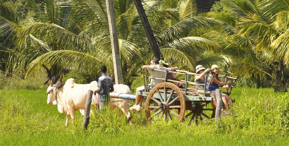 Esta experiência permitirá estar em contacto com a vida rural da população local. A excursão é feita utilizando os meios de transporte habituais da zona: inicia-se com um passeio num carro de bois e termina com um passeio de catamaran.